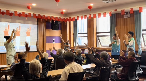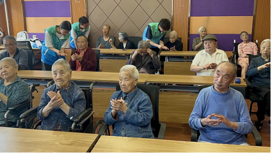 在讲解间隙,志愿者们走到老人身旁,带领大家做起了手指操。“大拇指转一转,食指弯一弯……”志愿者们一边耐心示范,一边轻声引导。老人们努力地跟着节奏活动手指,有的老人动作稍慢,但在志愿者手把手的帮助下,也渐渐找到了感觉。手指的屈伸、转动,如同灵动的音符,奏响了活力的前奏,老人们脸上露出了专注又愉悦的笑容,原本安静的敬老院充满了生机。