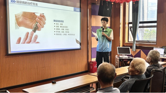 活动开场,桂力康站在屏幕前,以通俗易懂且生动风趣的语言,为老人们讲解关于中老年疾病预防的知识。针对高血压和糖尿病这两种常见慢性病,他不仅深入浅出地阐述了疾病成因、症状表现,还着重分享了日常饮食、运动及生活习惯方面的预防要点。老人们认真聆听,不时点头表示赞同,在一问一答的互动中,现场氛围逐渐升温,健康的理念也悄然在老人们心中扎根。