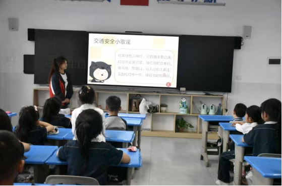 下午14:30,102班教室里的气氛空前高涨。主持人以“七步洗手法”为切入点,通过生动演示和图片展示,带领同学们逐步学习正确的洗手步骤,强调“洗手不少于20秒”等细节。随后,活动聚焦交通安全、安全用电、预防溺水三大主题,结合情景演绎与知识问答,引导孩子们辨识危险行为。在“触电急救”模拟环节,同学们踊跃参与,提出“用干燥木棒分离电源”“拨打120求助”等科学应对措施。最后,交通安全小歌谣的齐声朗诵将课堂氛围推向高潮,朗朗上口的歌词让孩子们轻松记住了“红灯停,绿灯行”等基本的交规。