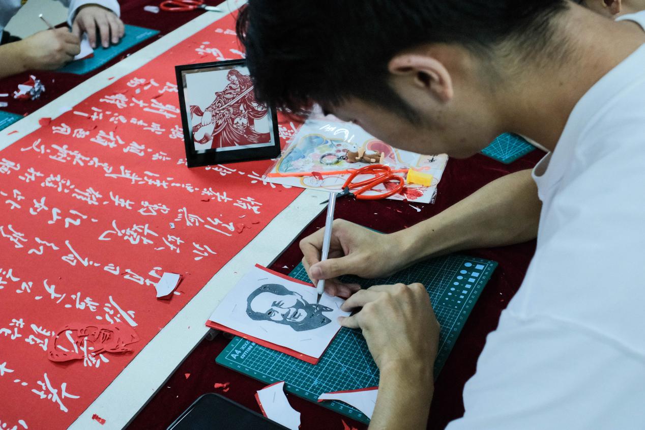 在非遗传承老师的指导下,党员同志们认真裁剪,用自己的细心、耐心将伟人肖像栩栩如生地展现出来,那一刻,伟人的光芒映射在每一名党员的心间。