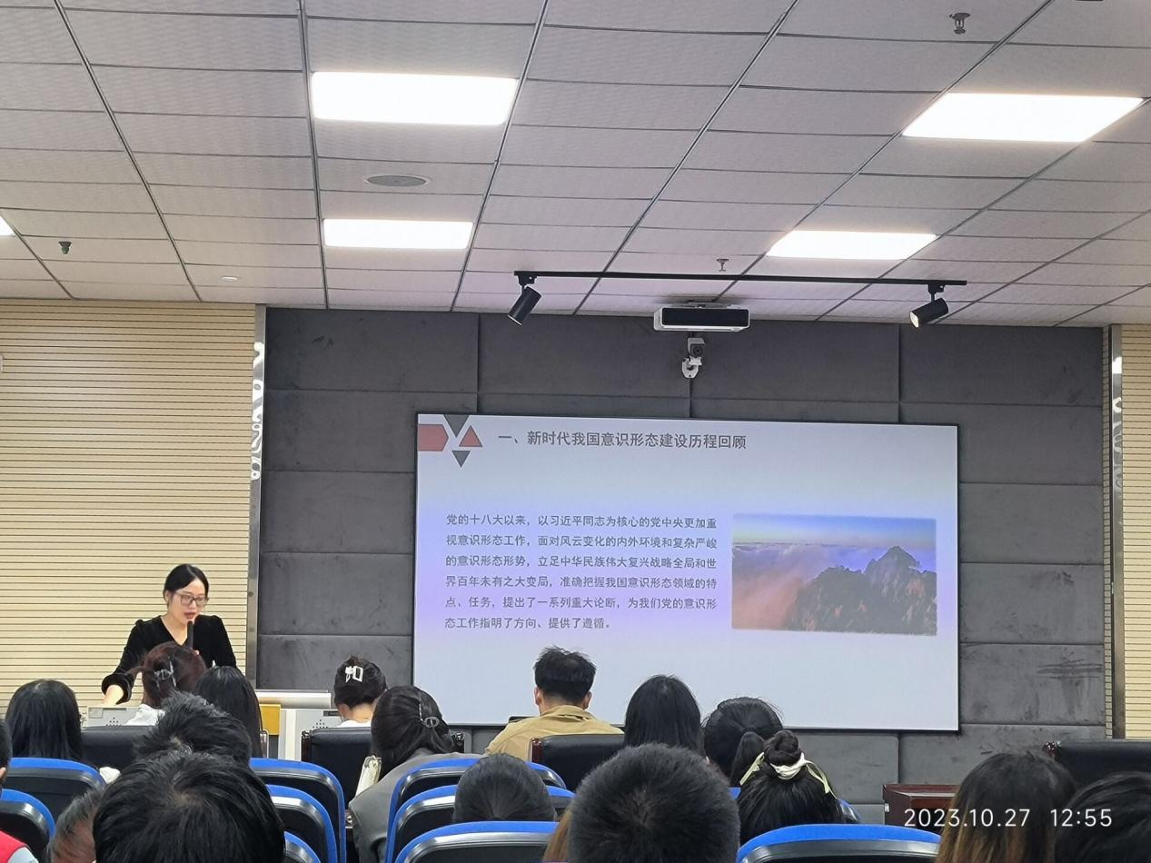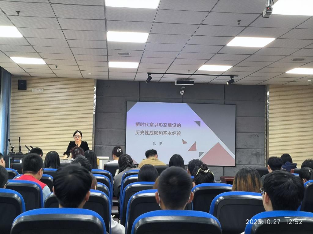 本次活动夏梦老师作为主讲人授党课。夏老师以“新时代意识形态建设的历史性成就和基本经验”为题,就新时代我国意识形态建设历程回顾,新时代我国意识形态领域形势发生全局性、根本性转变和新时代我国意识形态建设的基本经验等三个方面阐述了新时代我国意识形态领域形势。