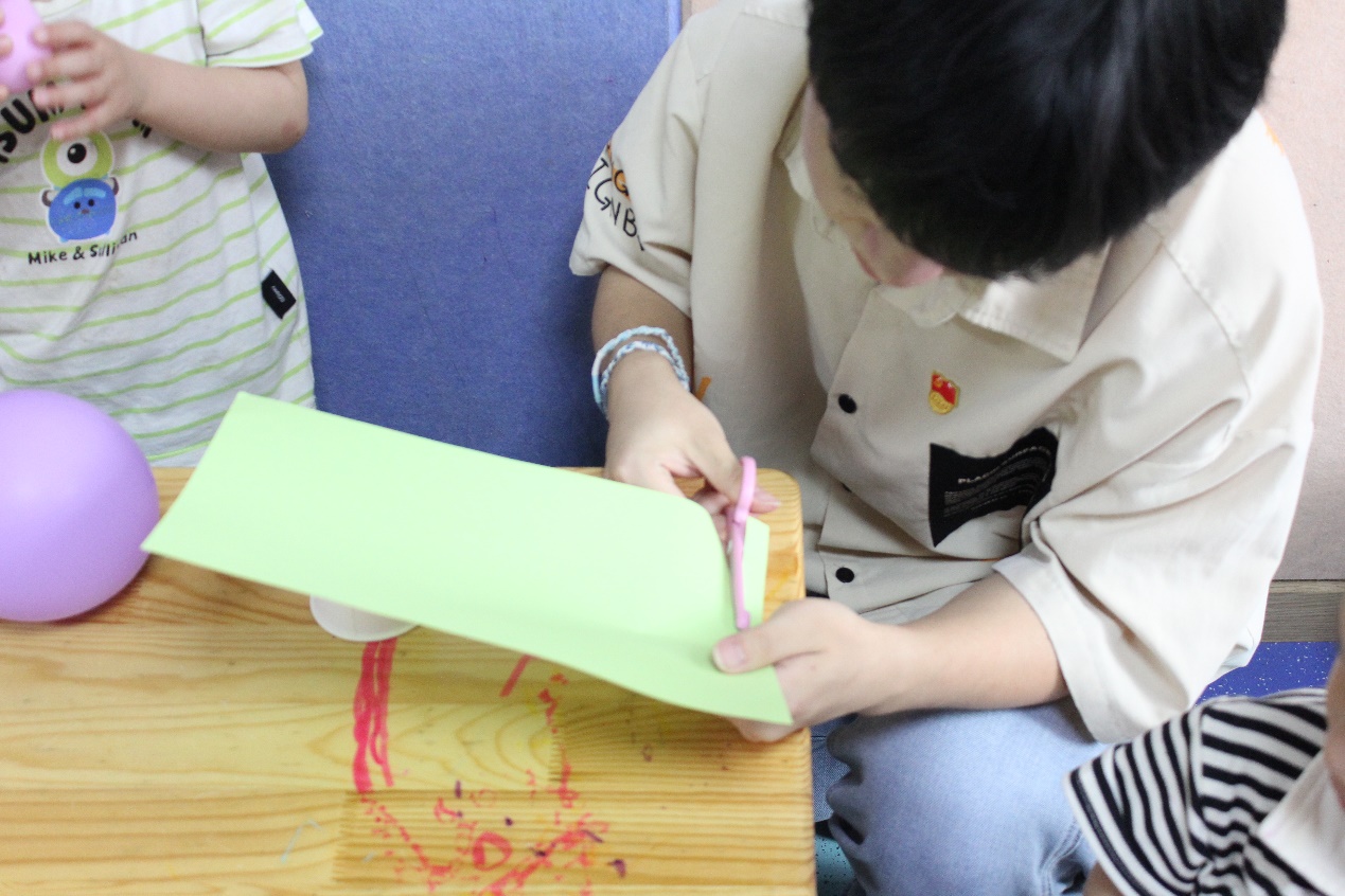 除了制作礼物,志愿者还陪伴小朋友们尽情玩耍。在橡皮泥塑形游戏中,小朋友们天真烂漫地发挥想象,创造出一个个独具匠心的作品;在玩具互动环节,他们笑得合不拢嘴,尽情享受着欢乐时光。这些简单而真挚的互动,不仅增进了小朋友们与同学们之间的友谊,也让大家感受到了那份纯真无邪的快乐。小朋友们在志愿者的陪伴下,尽情释放着童年的天真与快乐,而志愿者们也在与小朋友们的互动中,感受到了纯真与善良的力量。在轻松愉快的氛围中,小朋友们与同学们建立起了深厚的友谊,大家一起嬉戏、欢笑,共同度过了一段温馨而难忘的时光。
