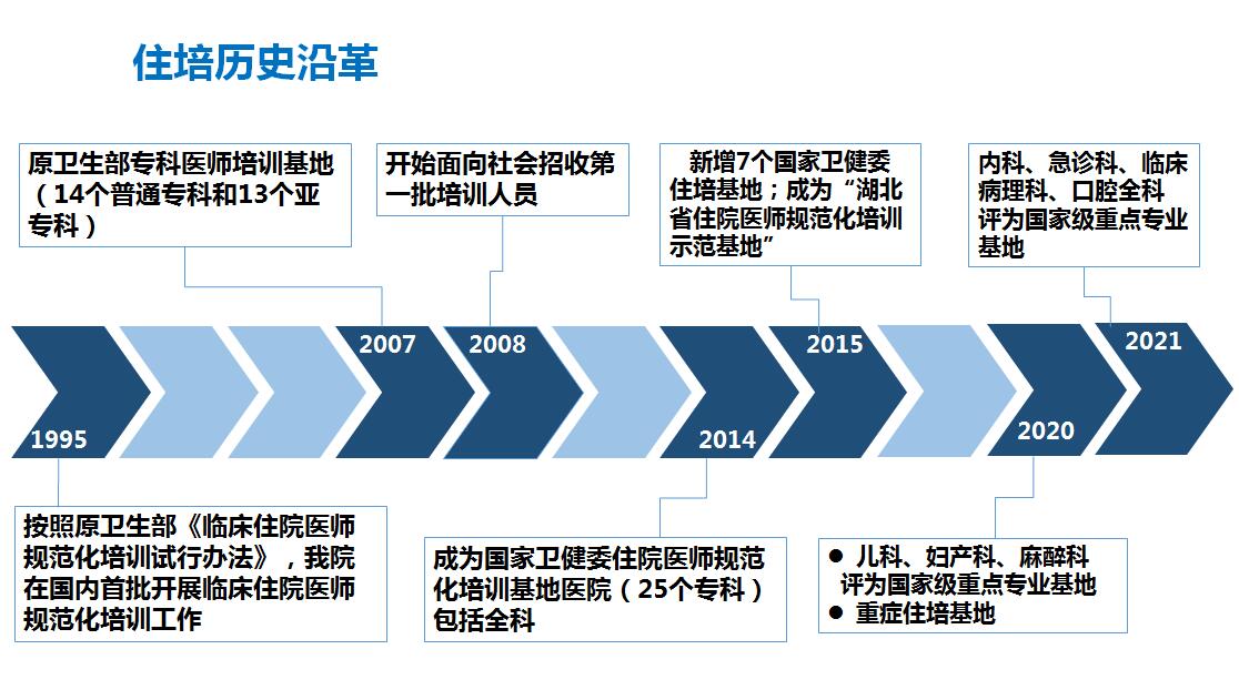 同济医院住院医师规范化培训工作开始于1995年,2014年成功获批第一批国家级住院医师规范化培训基地。2015年荣获“湖北省住院医师规范化培训示范基地”称号。同济医院始终坚持贯彻落实国家卫生政策方针,依据国家和湖北省的相关规定,制定符合国家要求,符合同济实际情况的住培制度,做到与时俱进,严谨求实,开拓创新,核对住培工作的每一个细节,一切以培养合格的住院医师为目标,不断探索和实践更加贴合实际的培训方法。