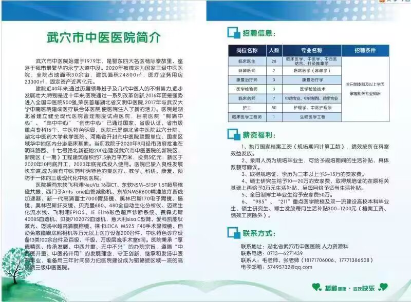 联系地址:湖北省武穴市中医医院 人力资源科